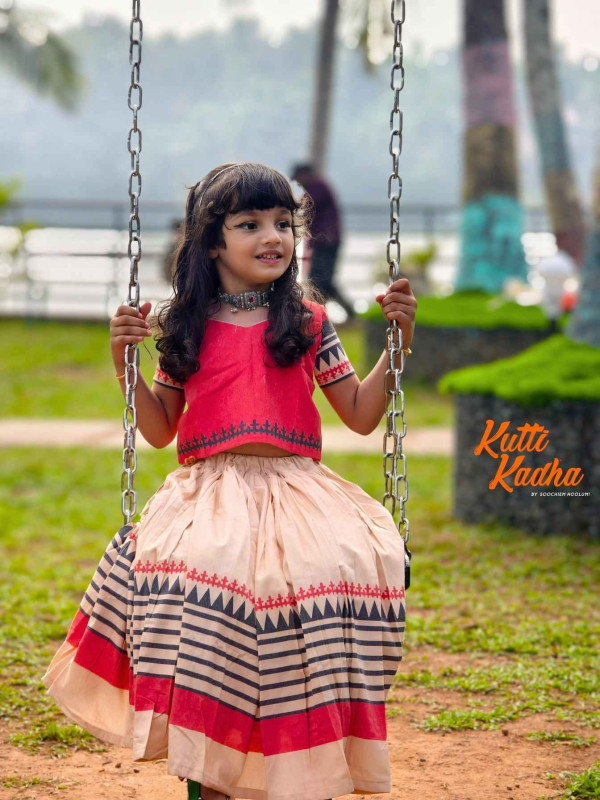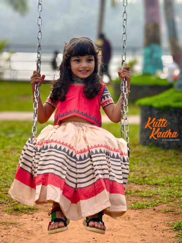 Crafted from soft, breathable cotton, the blouse and skirt offer exceptional comfort, ensuring your child stays cheerful and comfortable throughout the festivities. The blouse features artistic geometric patterns that cleverly blend symmetry and playful vibrancy, bringing out the joyfulness and energy of childhood.
