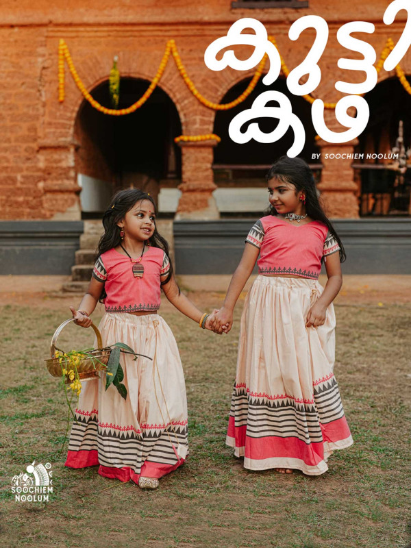Introducing AAKRITI VIKRUTHI, an enchanting Geometric Printed Blouse and Skirt set from Kutti Kadha by Soochiem Noolum. This captivating ensemble combines classic elegance with a playful, mischievous twist, perfect for your little one's festive and special occasions.