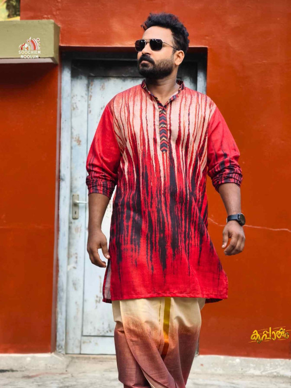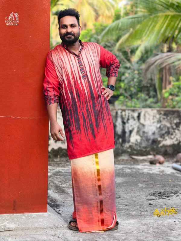 Vishu Special Premium Designer Kurta+ Ombre shade Designer Tissue Kasavu Dhoti Combo - Red [KURTACOMBO00054]