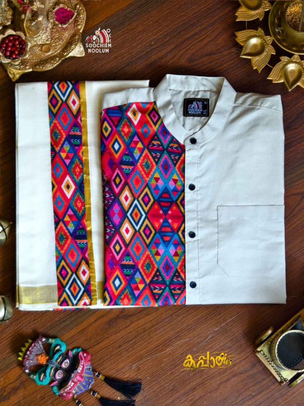 Product Specifications: Designer Shirt +Double Dhoti combo by Soochiem Noolum