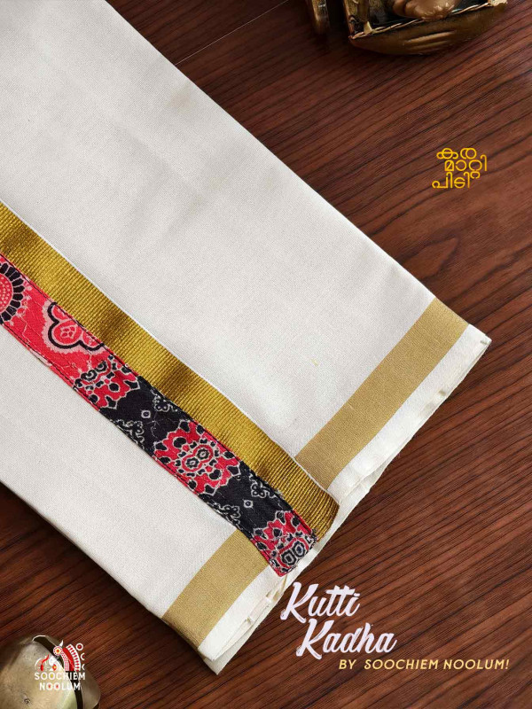 Introducing the vibrant Kids' Dhoti Collection by Kutti Kadha from Soochiem Noolum, specially crafted to blend tradition and comfort for energetic little ones. Each dhoti is meticulously designed from soft cotton fabric and beautifully adorned with colorful stitched borders and elegant embellishments, adding a playful charm to traditional attire.