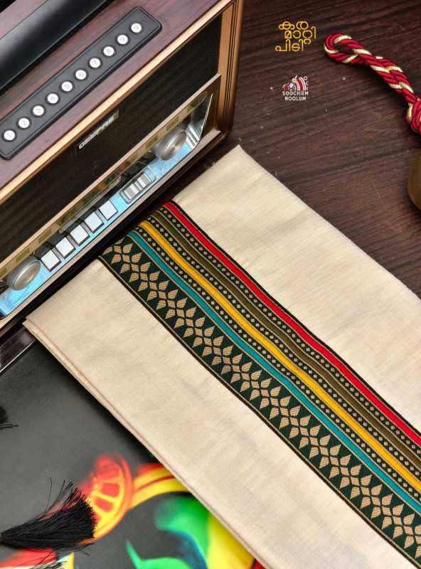 Product Specifications: Multi Colour Embroidery Golden Kasavu Single Dhoti