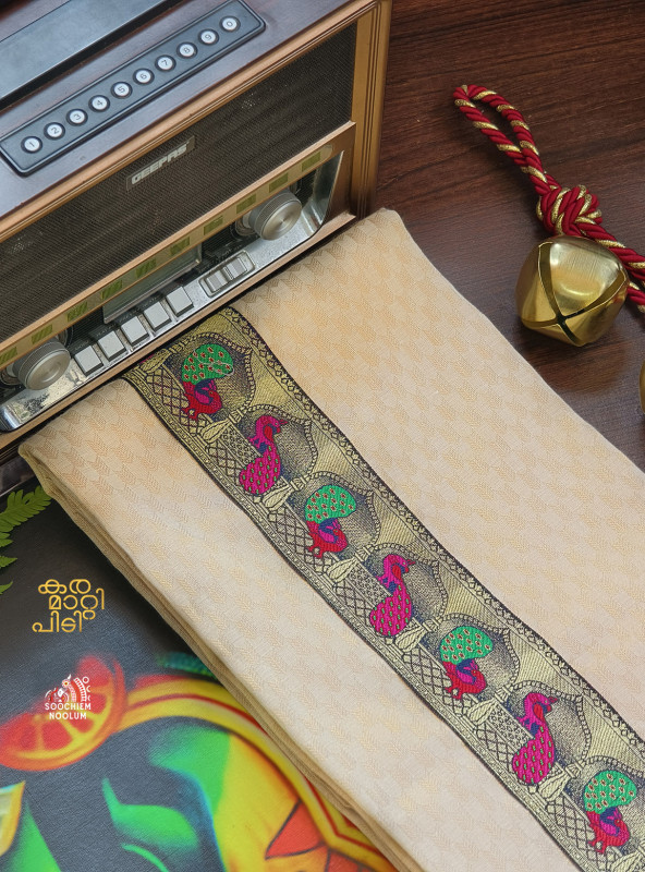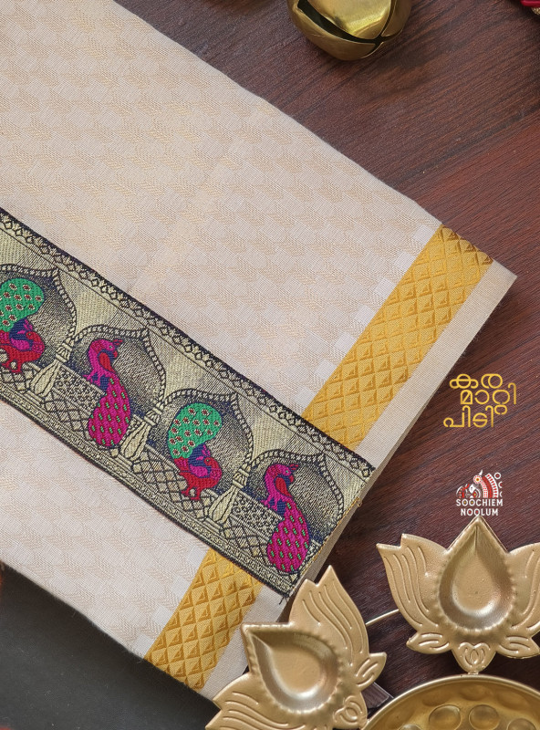 Product Specifications: Multi Colour Embroidery Golden Kasavu Single Dhoti