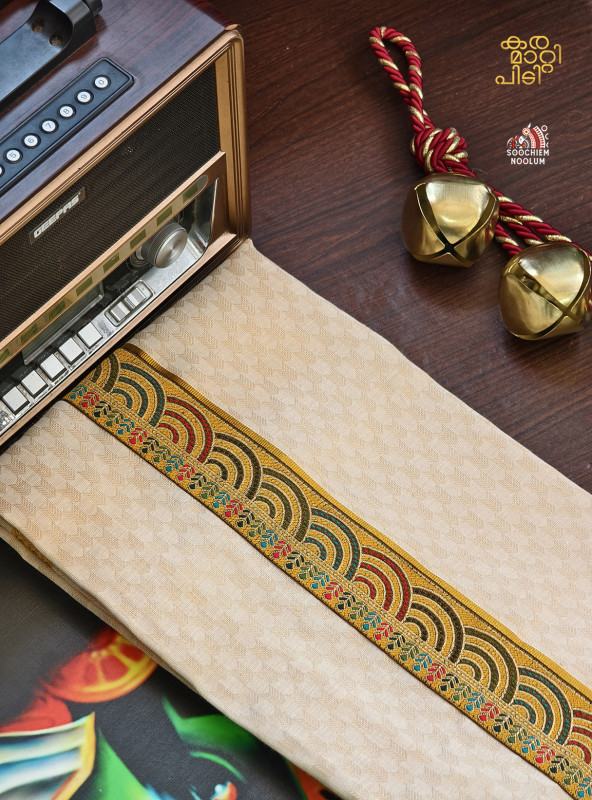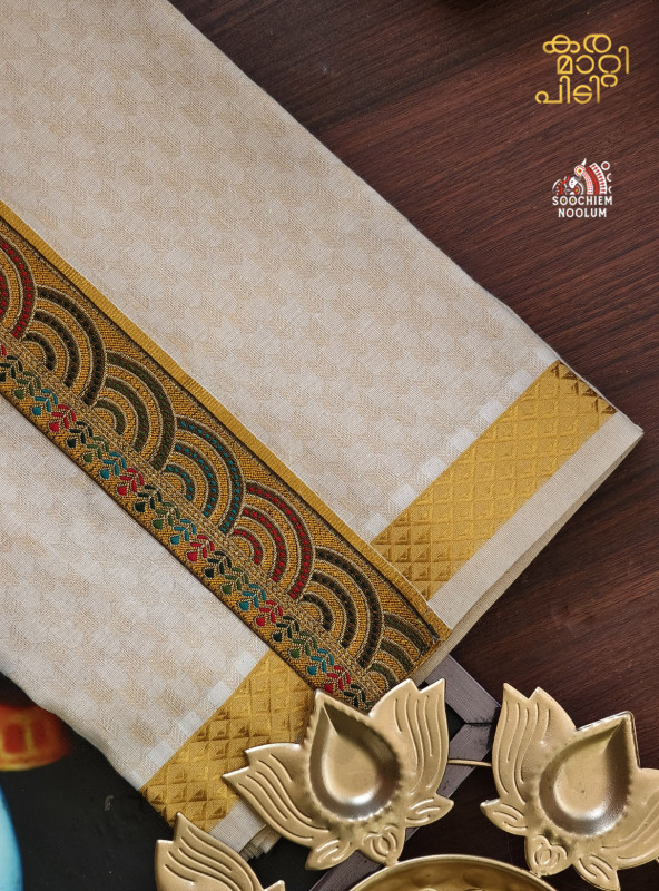 Product Specifications: Multi Colour Embroidery Golden Kasavu Single Dhoti
