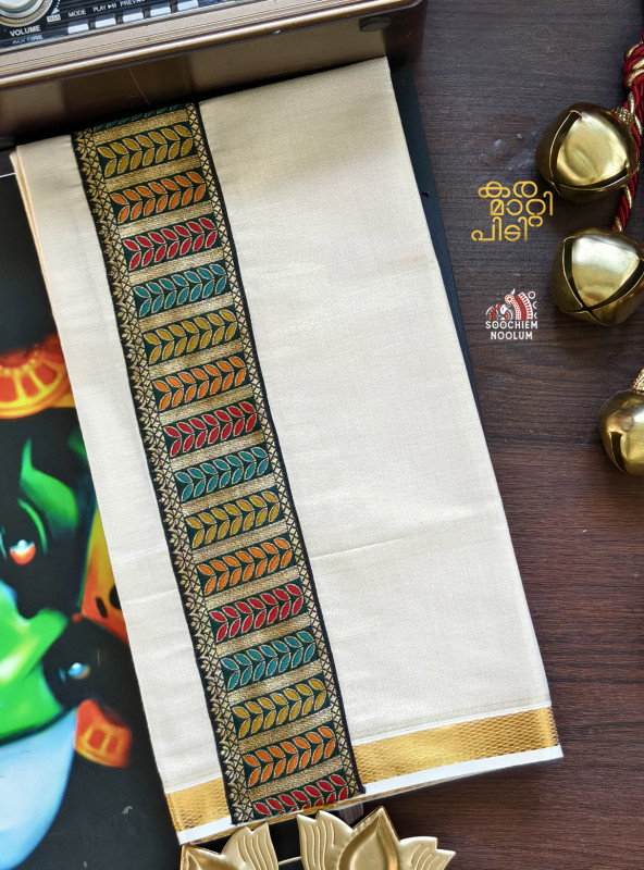 Product Specifications: Multi Colour Embroidery Golden Kasavu Single Dhoti
