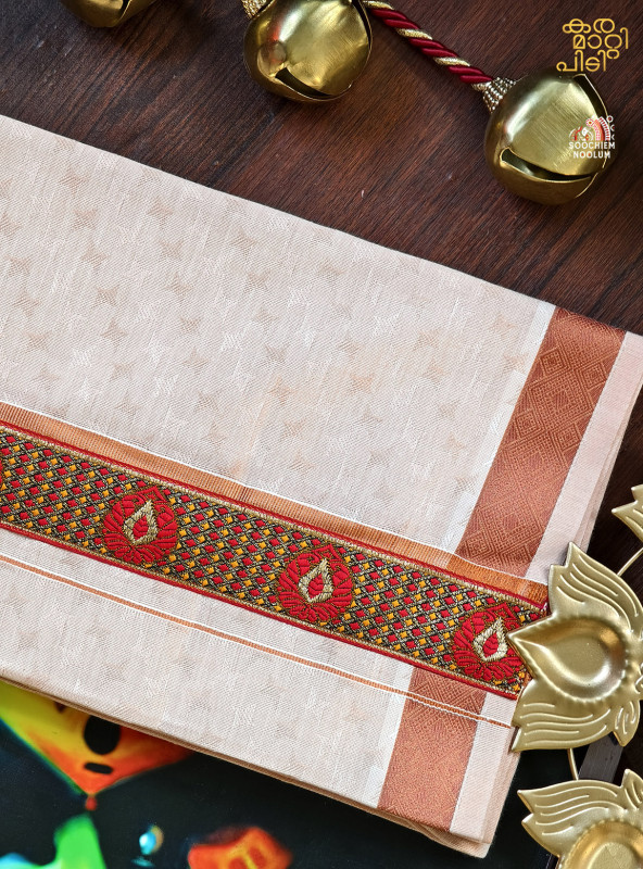 Product Specifications: Multi Colour Embroidery Copper Kasavu Single Dhoti