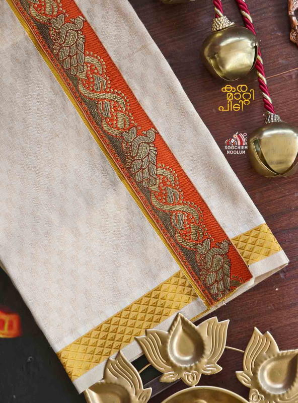 Product Specifications: Multi Colour Embroidery Golden Kasavu Single Dhoti