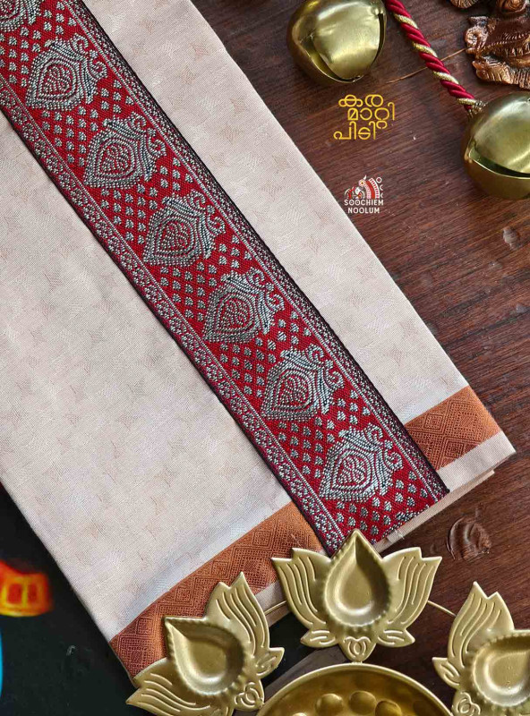 Product Specifications: Multi Colour Embroidery Cooper Kasavu Single Dhoti