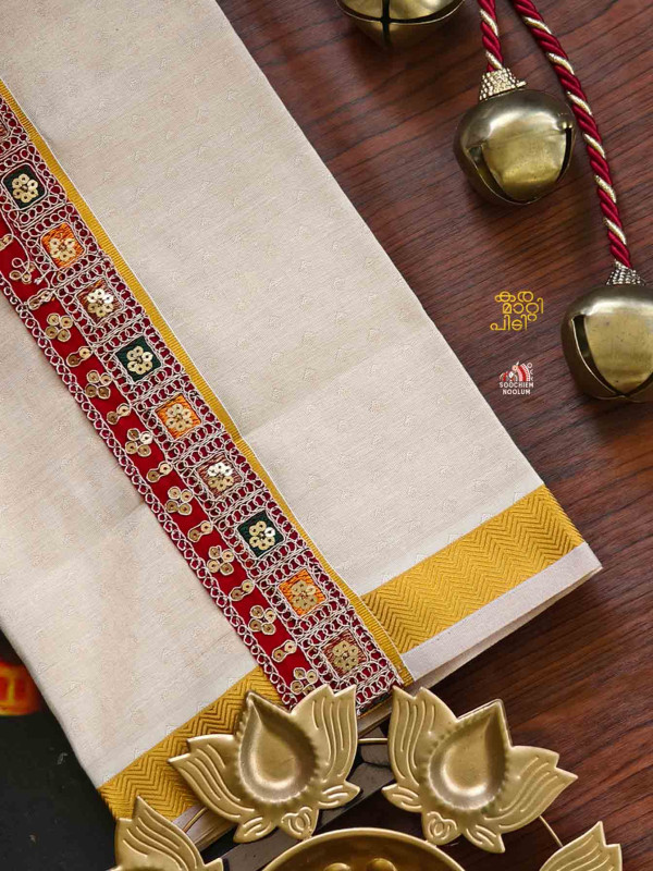 Product Specifications: Multi Colour Embroidery Golden Kasavu Single Dhoti