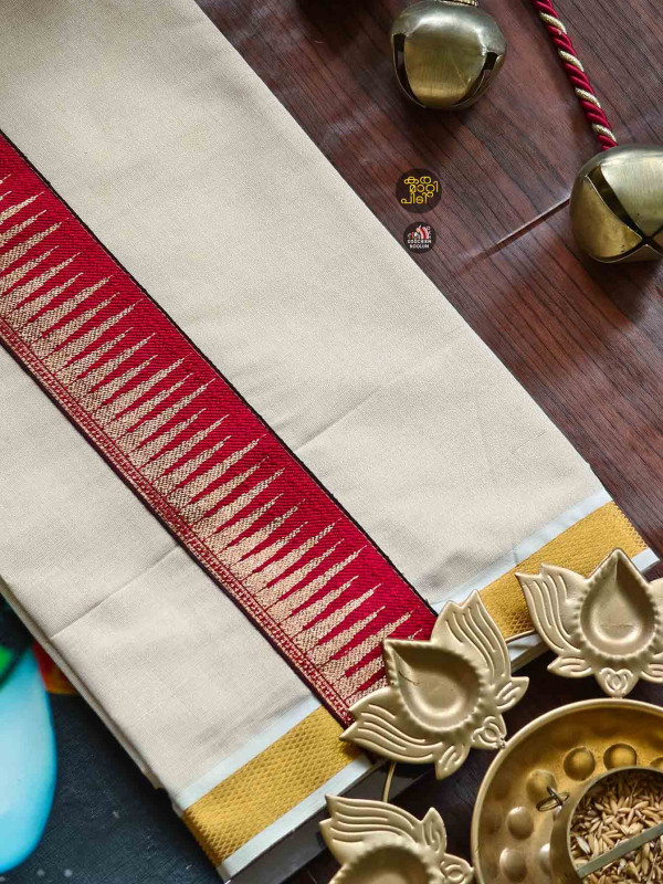 Product Specifications: Multi Colour Embroidery Golden Kasavu Single Dhoti