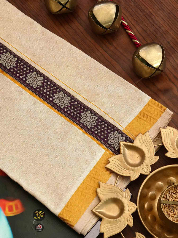 Product Specifications: Multi Colour Embroidery Golden Kasavu Single Dhoti