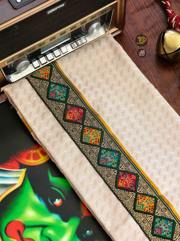 Product Specifications: Multi Colour Embroidery Copper Kasavu Single Dhoti