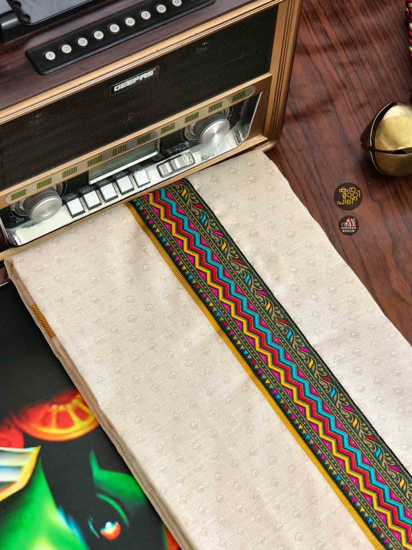 Product Specifications: Multi Colour Embroidery Golden Kasavu Single Dhoti