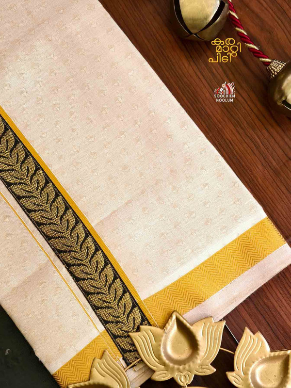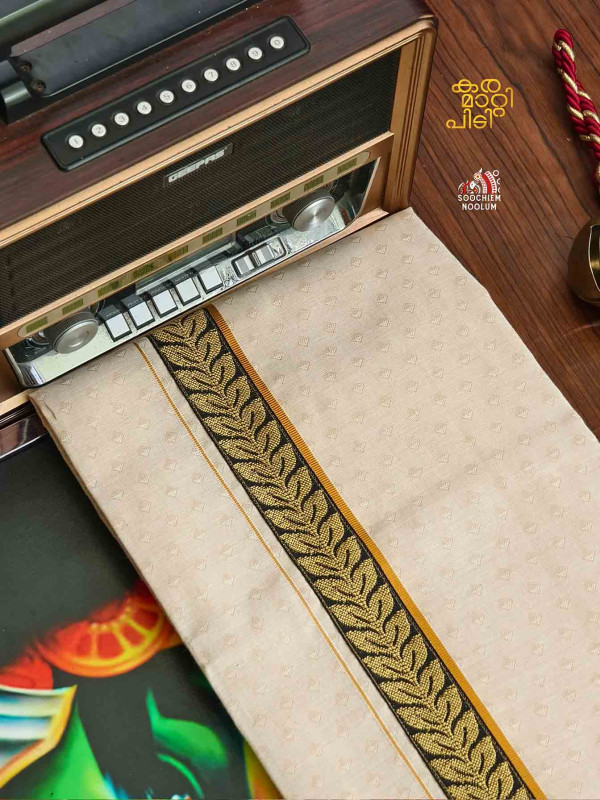 Product Specifications: Multi Colour Embroidery Golden Kasavu Single Dhoti
