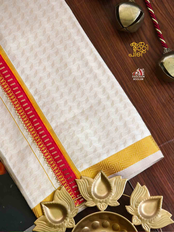 Product Specifications: Multi Colour Embroidery Golden Kasavu Single Dhoti