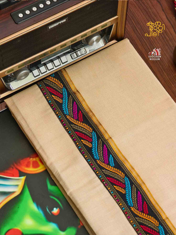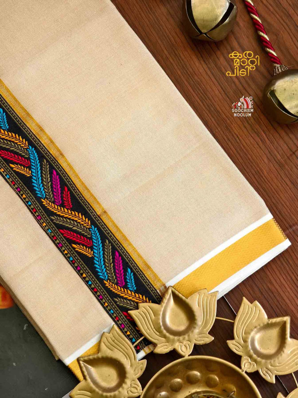 Product Specifications: Multi Colour Embroidery Golden Kasavu Single Dhoti