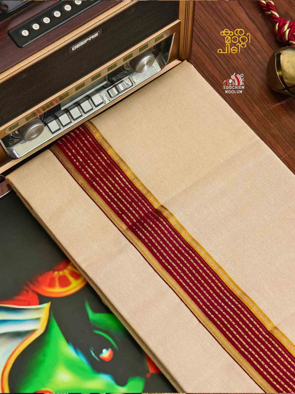 Product Specifications: Multi Colour Embroidery Golden Kasavu Single Dhoti