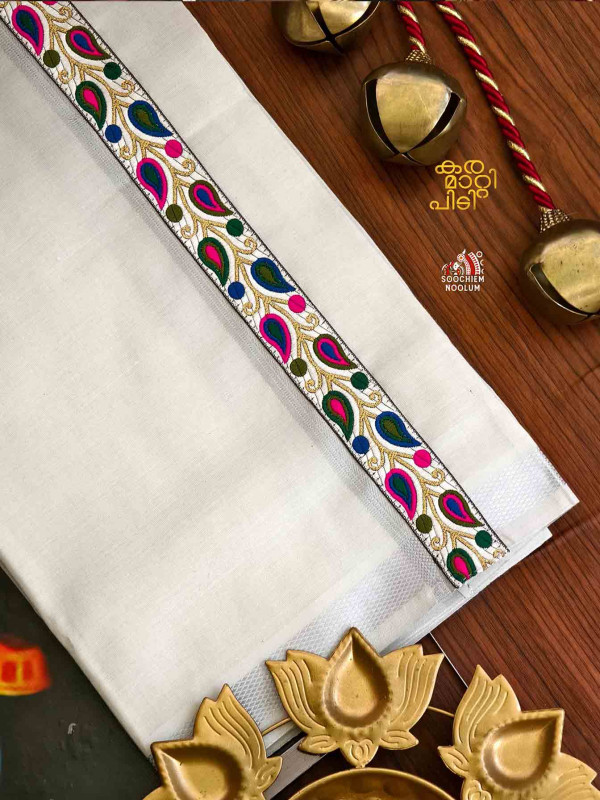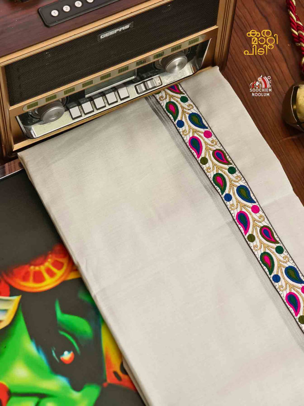 Product Specifications: Multi Colour Embroidery Silver Kasavu Single Dhoti