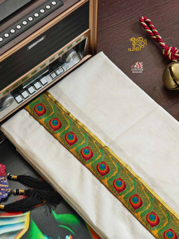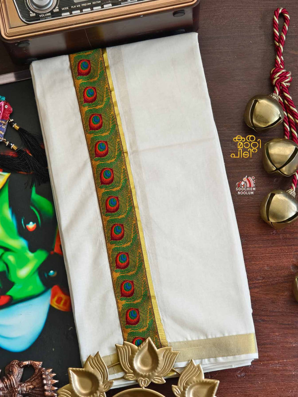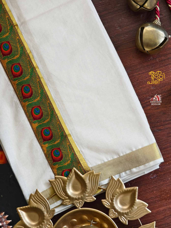 Stiched Border: Both end of the double kasavu dhotie is elegantly finished with a stitched border embroidery lace adding a touch of sophistication and durability.