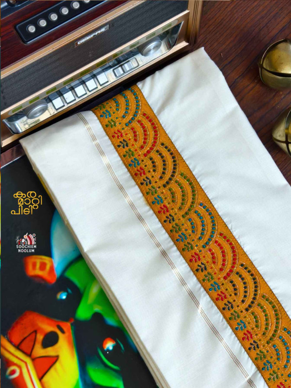 Stiched Border: Both end of the double kasavu dhotie is elegantly finished with a stitched border , adding a touch of sophistication and durability.