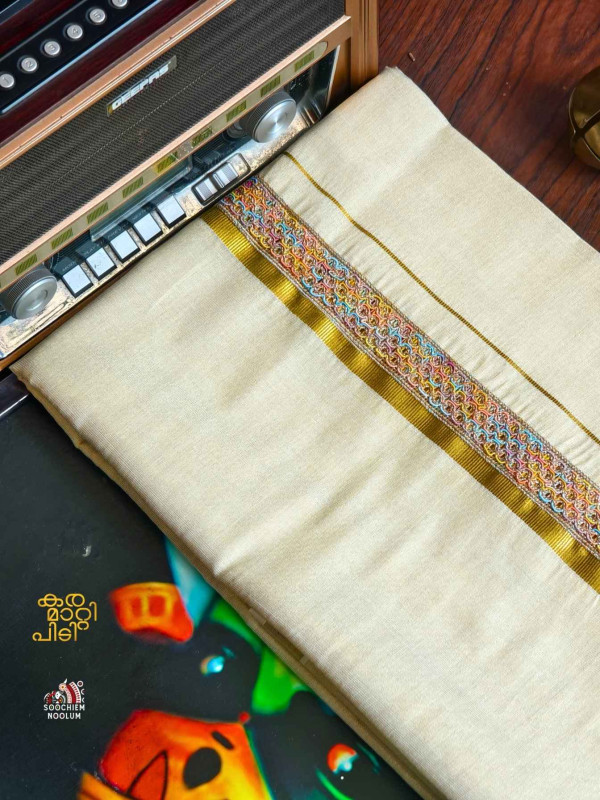 Stiched Border: Both end of the double kasavu dhotie is elegantly finished with a stitched border , adding a touch of sophistication and durability.