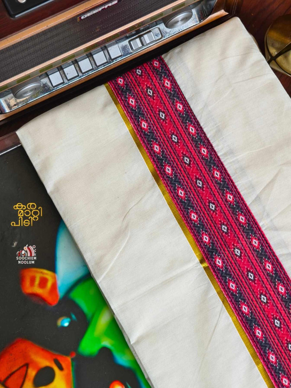 Stiched Border: Both end of the double kasavu dhotie is elegantly finished with a stitched border , adding a touch of sophistication and durability.