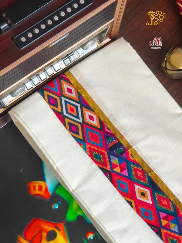 Stiched Border: Both end of the double kasavu dhotie is elegantly finished with a stitched border , adding a touch of sophistication and durability.
