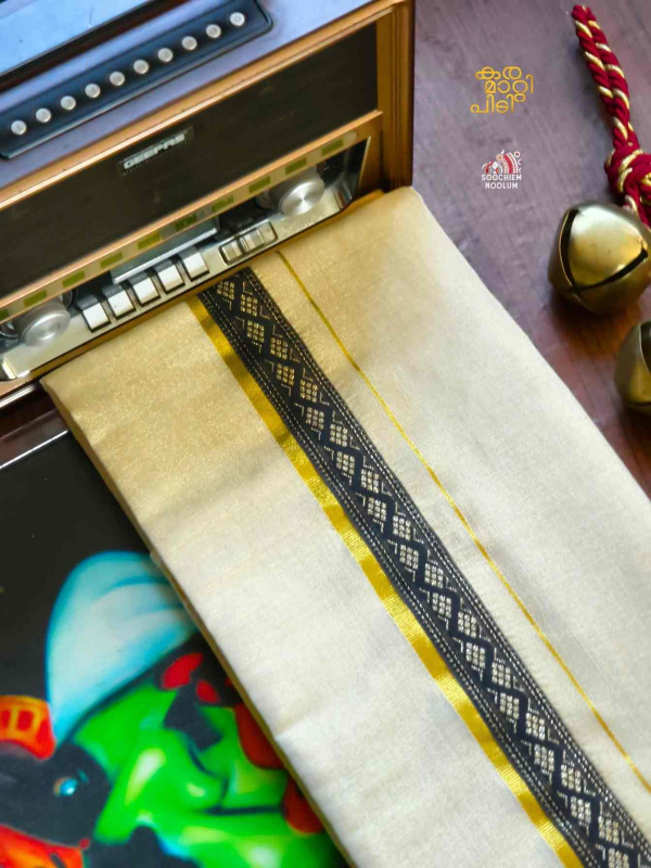 Stiched Border: Both end of the double kasavu dhotie is elegantly finished with a stitched border , adding a touch of sophistication and durability.