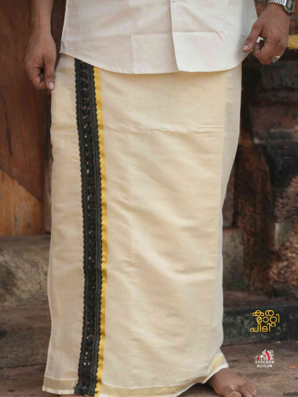 Stiched Border: Both end of the double kasavu dhotie is elegantly finished with a stitched border , adding a touch of sophistication and durability.