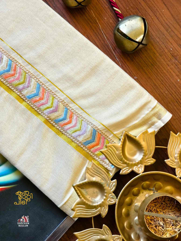 Stiched Border: Both end of the double kasavu dhotie is elegantly finished with a stitched border , adding a touch of sophistication and durability.
