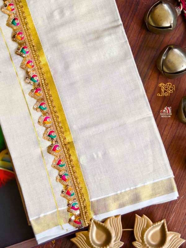Stiched Border: Both end of the double kasavu dhotie is elegantly finished with a stitched border , adding a touch of sophistication and durability.