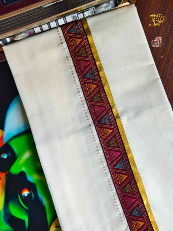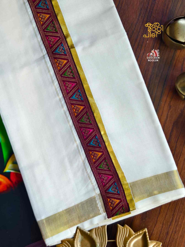 Stiched Border: Both end of the double kasavu dhotie is elegantly finished with a stitched border , adding a touch of sophistication and durability.