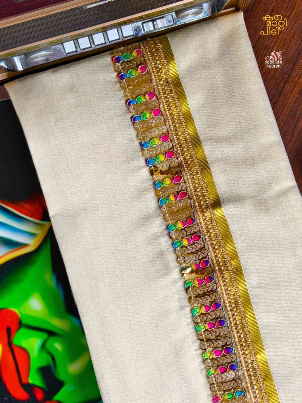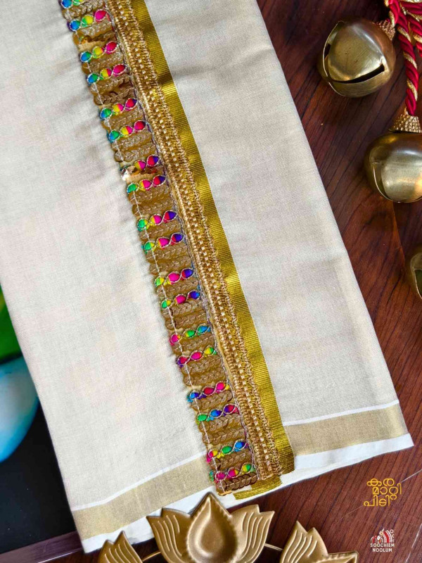 Stiched Border: Both end of the double kasavu dhotie is elegantly finished with a stitched border , adding a touch of sophistication and durability.