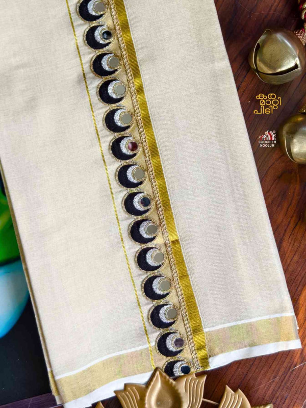 Stiched Border: Both end of the double kasavu dhotie is elegantly finished with a stitched border , adding a touch of sophistication and durability.