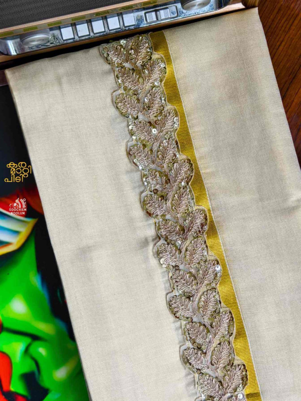 Stiched Border: Both end of the double kasavu dhotie is elegantly finished with a stitched border , adding a touch of sophistication and durability.
