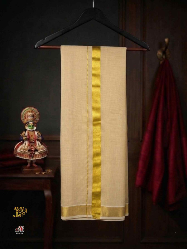Stiched Border: Both end of the double kasavu dhotie is elegantly finished with a stitched border , adding a touch of sophistication and durability.