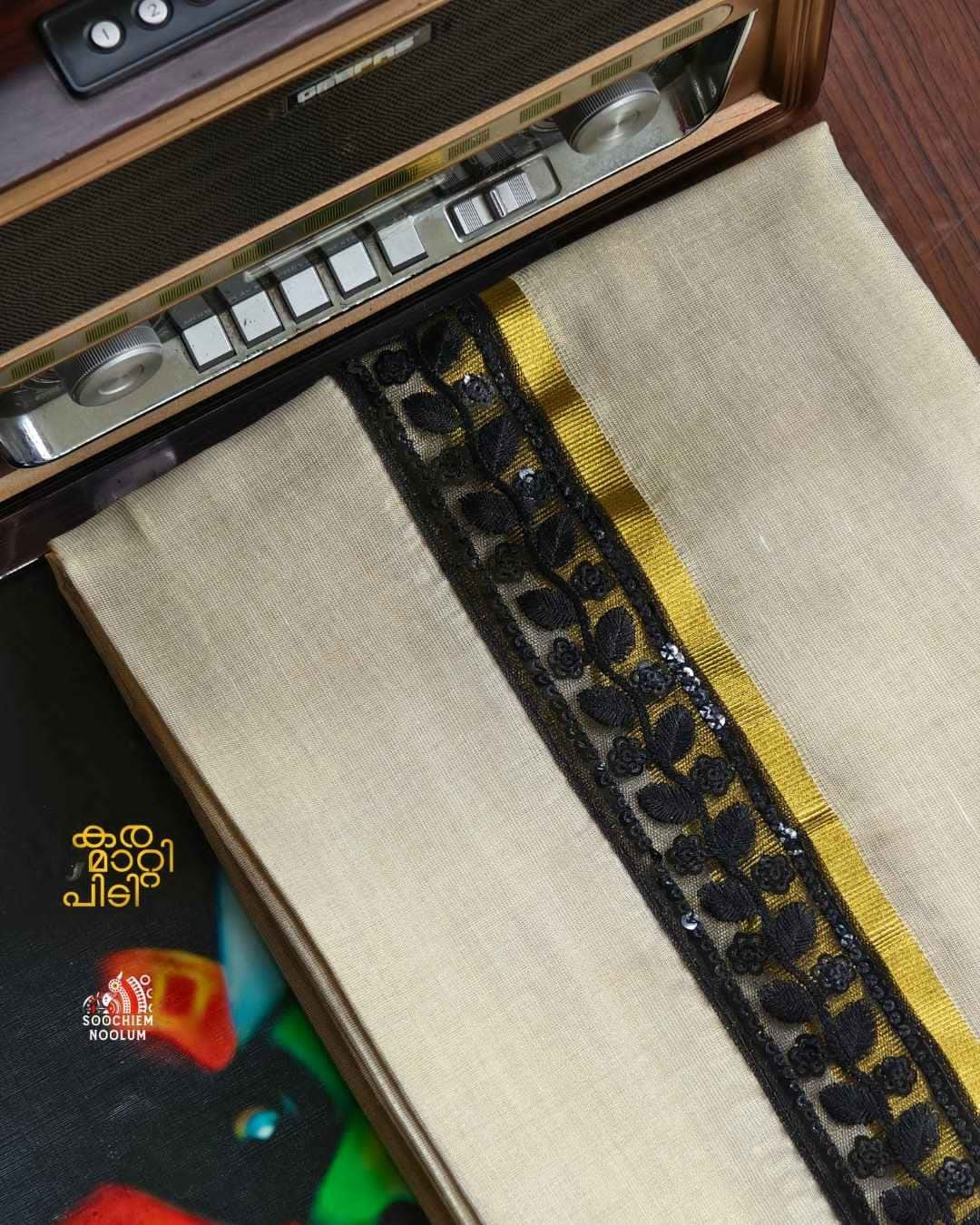 Stiched Border: Both end of the double kasavu dhoti is elegantly finished with a stitched border , adding a touch of sophistication and durability.