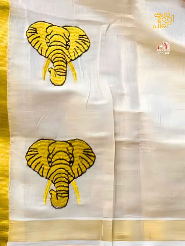 Premium Embroidery Elephant Design - Tissue Golden Kasavu Double Dhoti[DOUBLE00034]