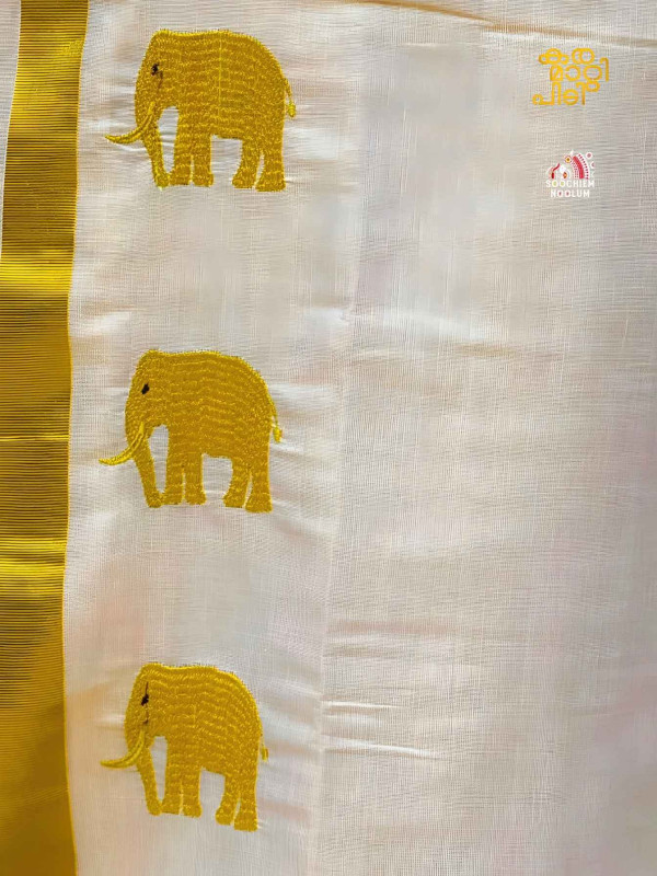 Premium Embroidery Elephant Design - Tissue Golden Kasavu Double Dhoti[DOUBLE00033]
