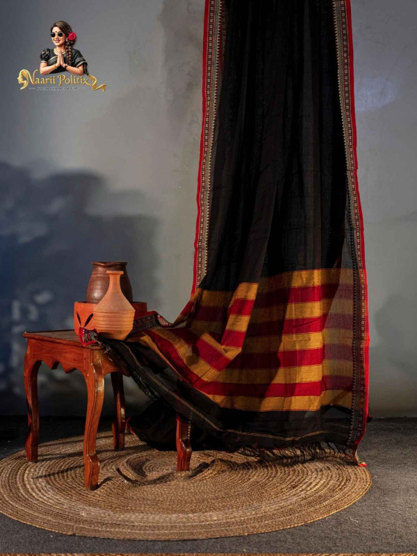 A beautiful blend of heritage weaving and everyday comfort, this Narayanpet Pure Cotton Saree stands out with its solid body h. The saree is elevated with a richly woven traditional Narayanpet border featuring striking layers of multiple colors, geometric and floral-inspired motifs, giving it a vibrant yet classic appeal. Lightweight, breathable, and graceful, it is a lovely choice for festive gatherings, temple visits, and elegant daily wear.