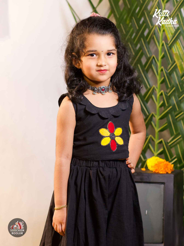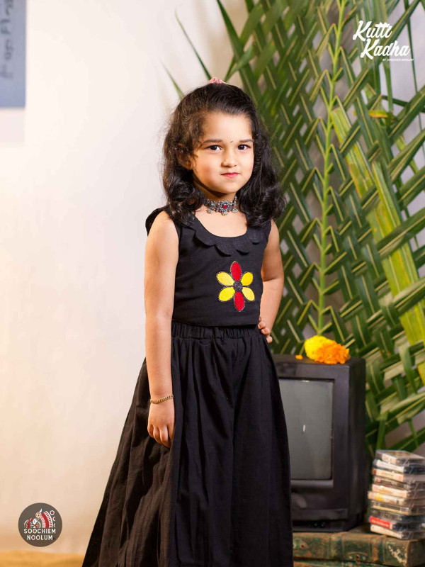 Introducing POOKKALAM, a delightful pleated Palazzo and Crop Top collection from Kutti Kadha by Soochiem Noolum. Crafted from soft cotton fabric , this charming ensemble features a center floral embroidery patch on top , enhancing its elegance and texture.