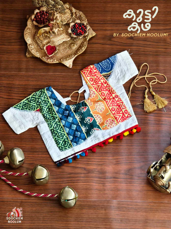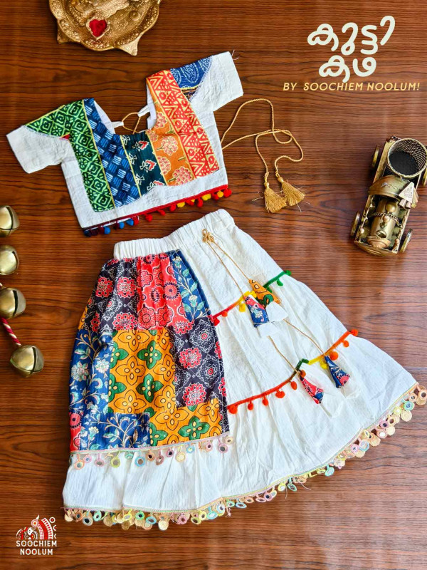 Elevate your little one's festive wardrobe with the exquisite Ajrakh Patchwork Skirt and Top Combo by Kutti Kadha from Soochiem Noolum. Beautifully crafted with attention to detail, this charming ensemble perfectly blends traditional artistry with contemporary style.